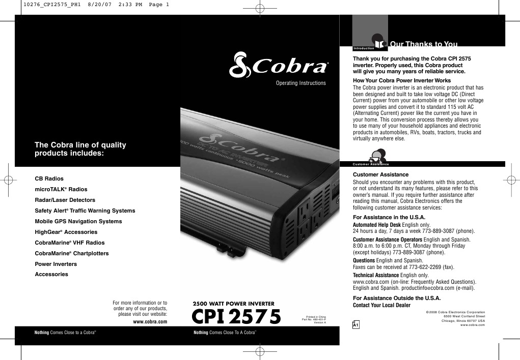 The cobra® power inverter is an electronic product that has been designed and built to take low voltage dc (direct current) power from your automobile or other low voltage power supplies and convert it to standard 115 volt ac. That is not quite as much as the next model we list; 3 grounded ac outletspowers up to three household appliances. 1 x 4 pin usb type a 2.1 a 3 x power. New in box 2500 watt cobra inverters for only $264.99!!